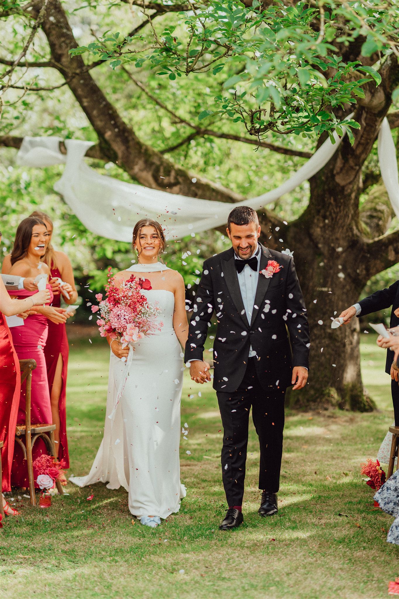 I absolutely loved coordinating Hannah and Paul’s 2025 wedding – they got married under the walnut tree on a beautiful September day. From the moment I met them with their family including their gorgeous dog Sully, I knew it was going to be a fabulous and fun wedding! Hannah and her lovely friends were the epitome of a bride tribe and the getting ready atmosphere was so much fun with hair and make-up, singing, dancing and drinks. They each signed the bottom of her shoes which was such a special touch and something I hadn’t seen before!