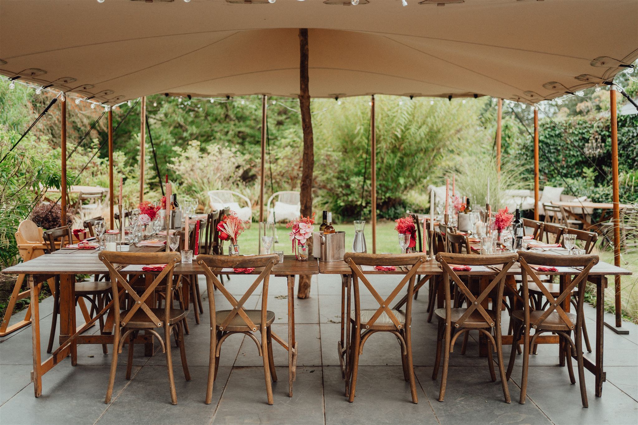 Kelly and Helen’s wedding was one of our first outdoor weddings of the year in early April – it was originally meant to take place in August but Kelly’s mum had become very unwell and the couple contacted us in January to see if the wedding date could be brought forward. It was all hands-on deck to make this happen and of course our extended supplier family were all on board and worked their magic.