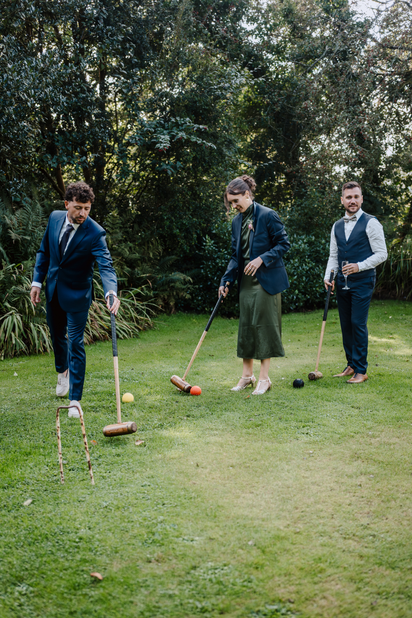The celebration continued with all the wonderful elements Morgane and Anthony had planned with us, including weaving in some very British and Cornish traditions, such as our afternoon tea with homemade scones and jam, and lashings of Cornish clotted cream served on Treseren’s vintage china. There was a great atmosphere with live music to accompany, and when the sun came out finally, fun with garden games. I loved seeing everyone having fun embracing the Treseren Bridgerton vibes, enjoying croquet on the front lawn.